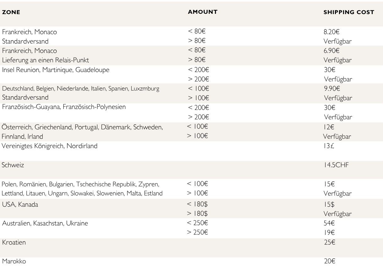 Die Lieferzeiten werden als Richtwert angegeben und Verzögerungen können nicht zu Schäden zu Lasten von LE JACQUARD FRANÇAIS oder zur Annullierung des Verkaufs führen. Jede Teillieferung stellt rechtlich einen separaten Vertrag dar und wird entsprechend der vorgesehenen Zahlungsweise in Rechnung gestellt und bezahlt.